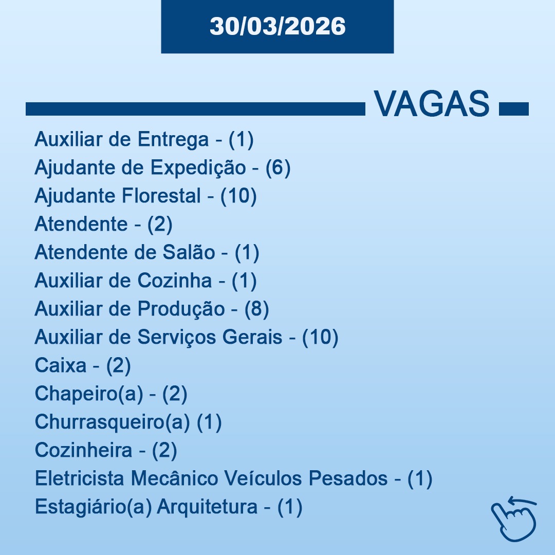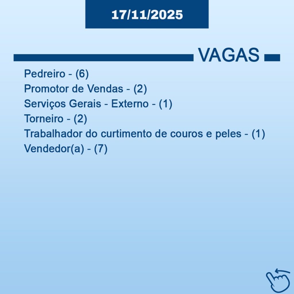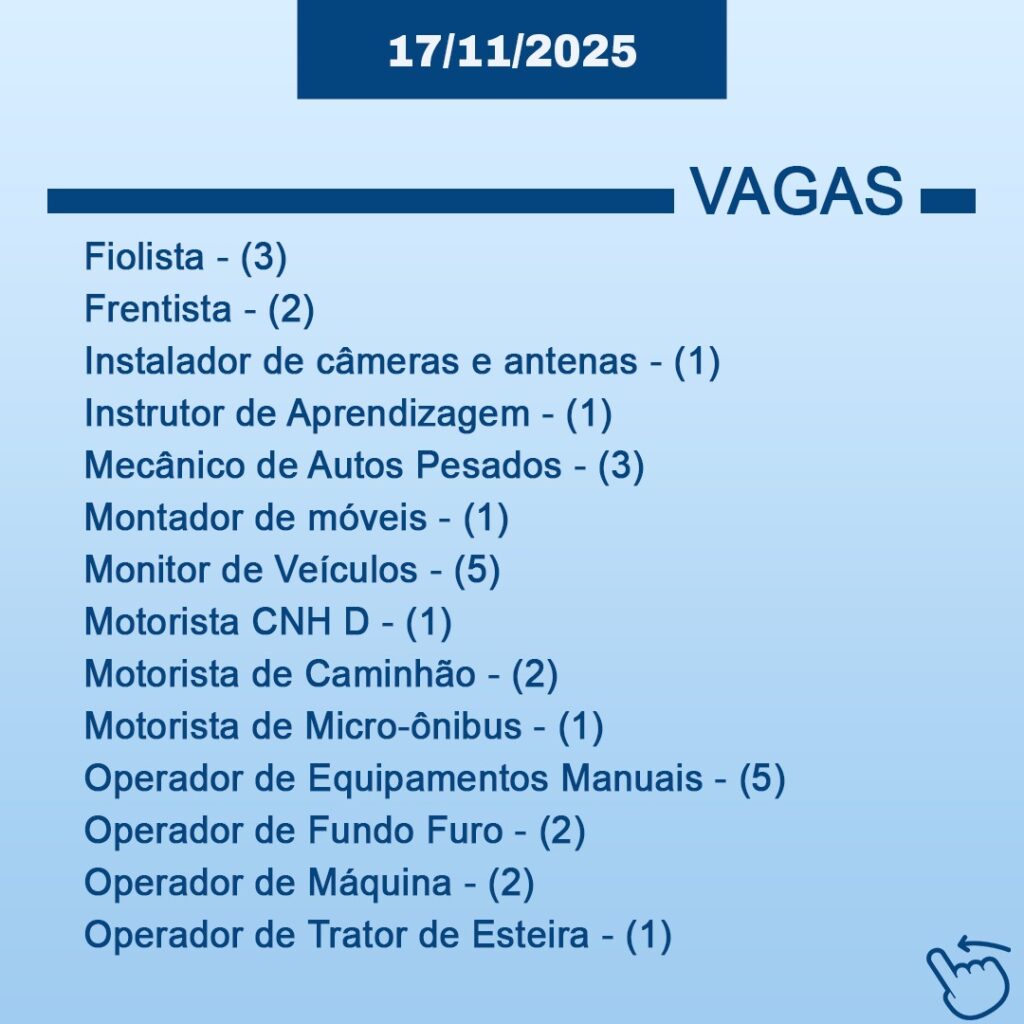 OBS: ℹ A Secretaria de Desenvolvimento Econômico atualiza as vagas semanalmente em colaboração com as empresas parceiras. Divulgamos as oportunidades, porém não temos responsabilidade sobre as entrevistas ou contratações, que são conduzidas pelas próprias empresas.