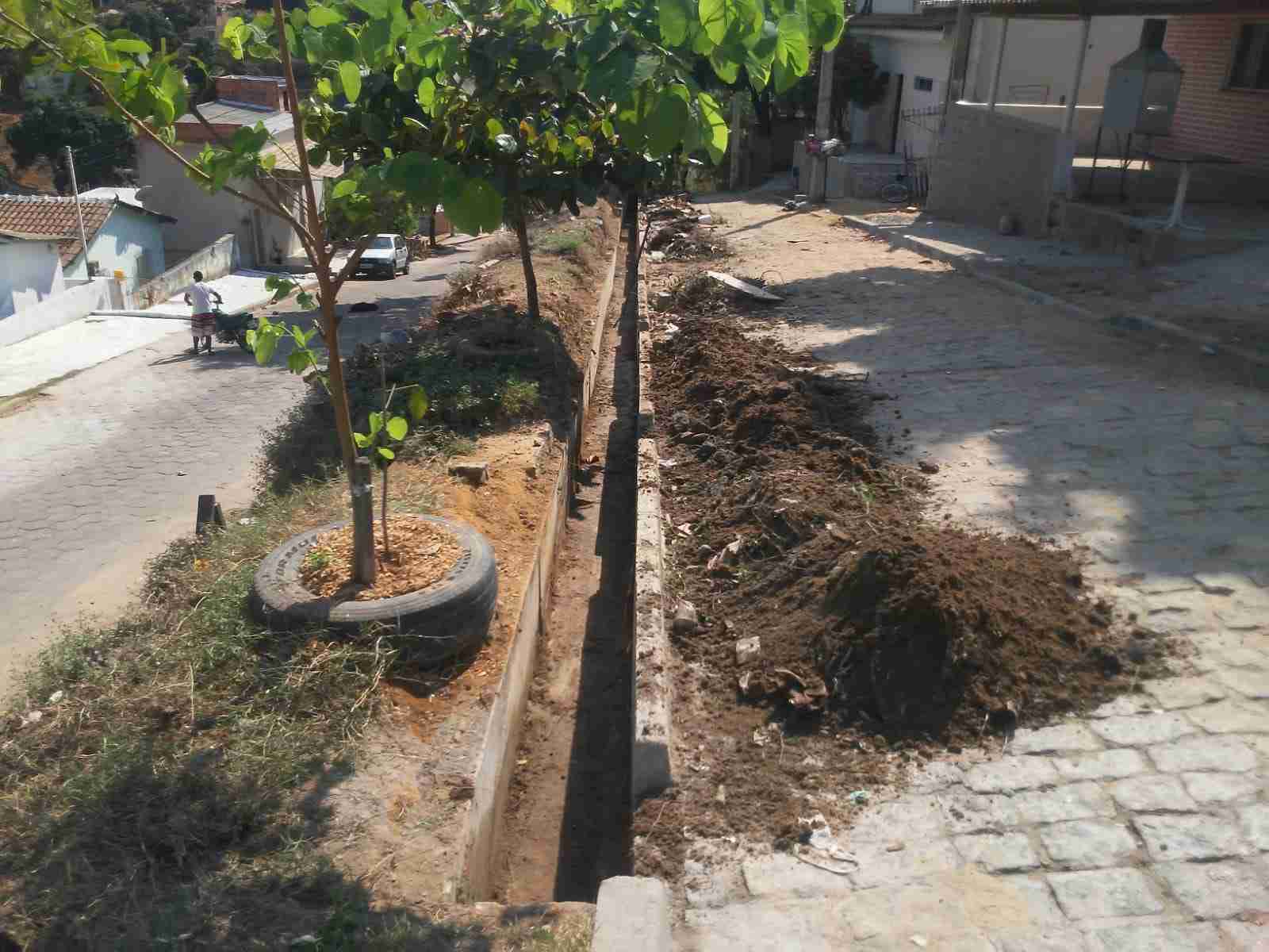 Dionimar Martinelli set, ter, 2021 Limpeza das canaletas do bairro Sapucaia. Foto Secretaria de Serviços Urbanos
